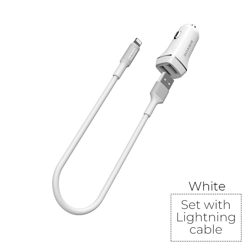 Borofone - Nabíječka do auta 2x USB Lightning kabel v balení, bílá