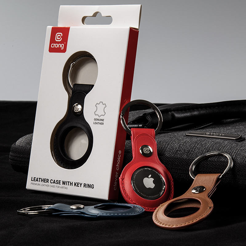 Crong Leather Case with key Ring - Kožené ochranné pouzdro s kroužkem na klíče pro Apple AirTag (...