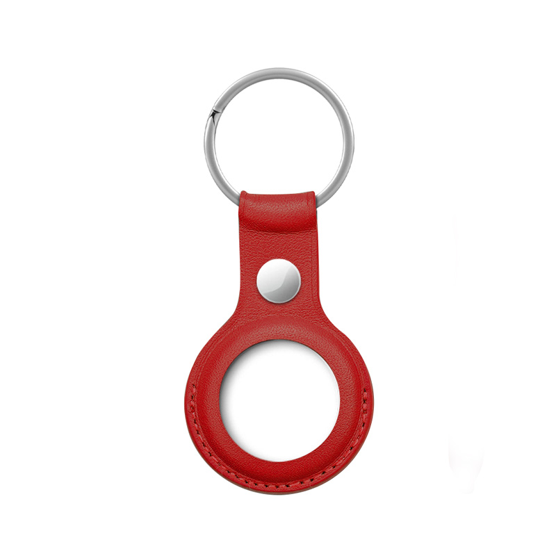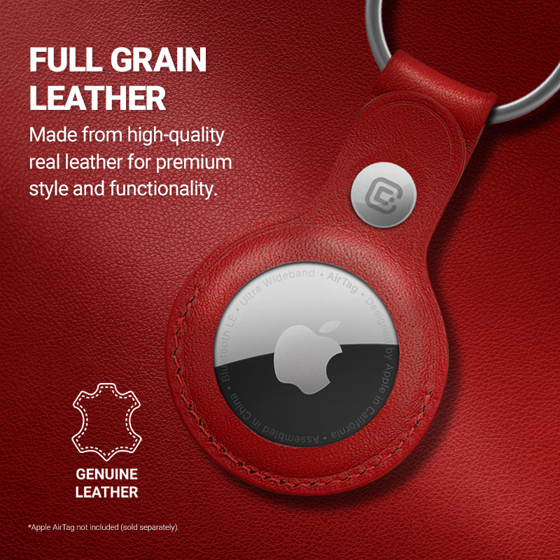 Crong Leather Case with Key Ring - Leather protective pendant case for Apple AirTag (Red)