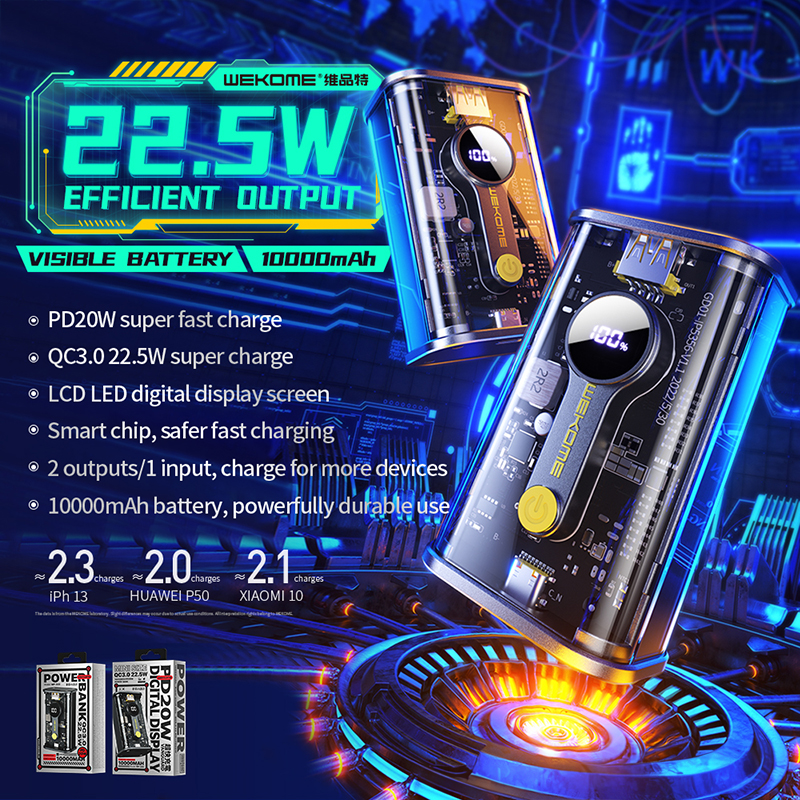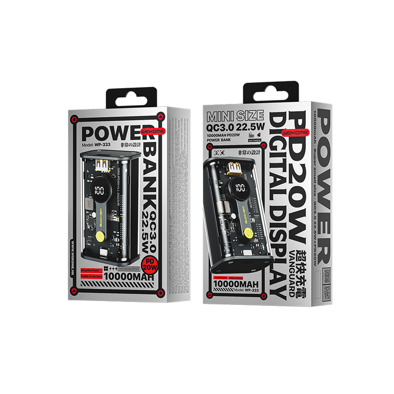 | Numele articolului | WEKOME WP-333 Vanguard Series - Power bank 10000 mAh Super Charging PD 20W + QC 22.5W (Black / Transparent) |