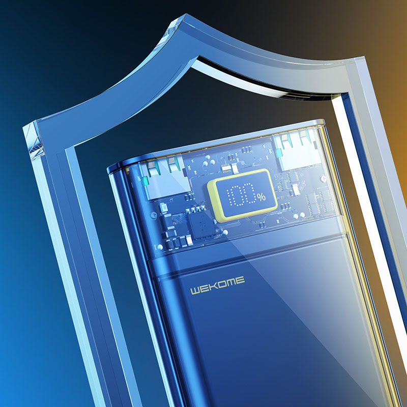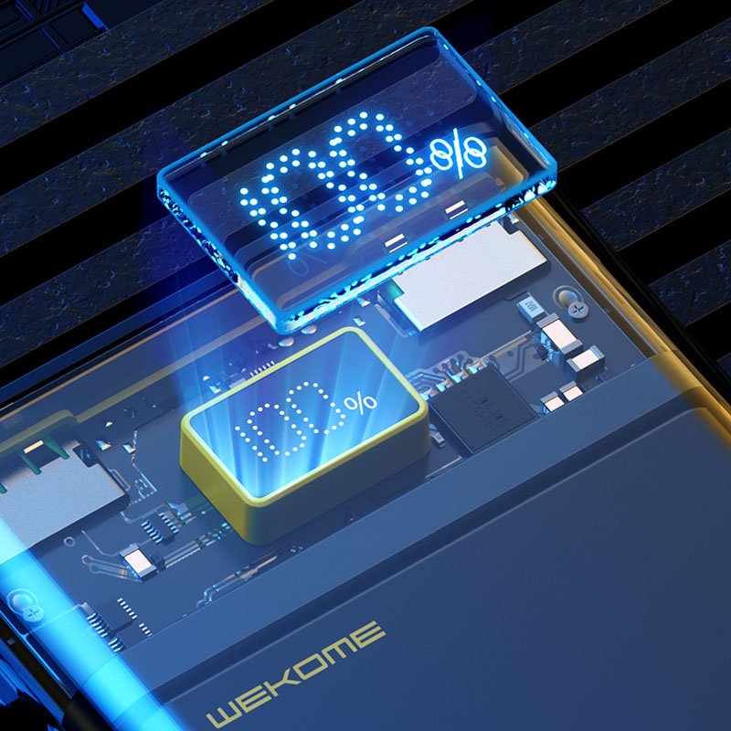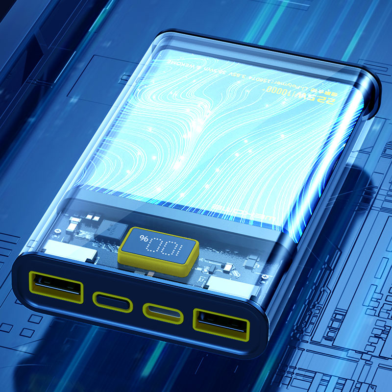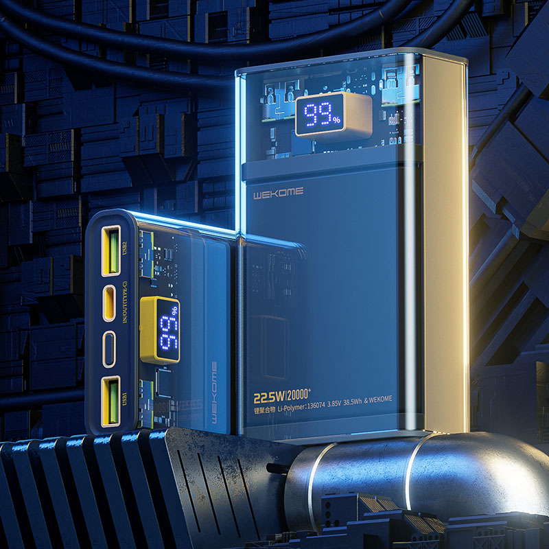 Name des Erzeugnisses.WEKOME WP-321 Vanguard Series - Powerbank 20000 mAh Super Charging PD 20W + QC 22.5W (Schwarz / Transparent)