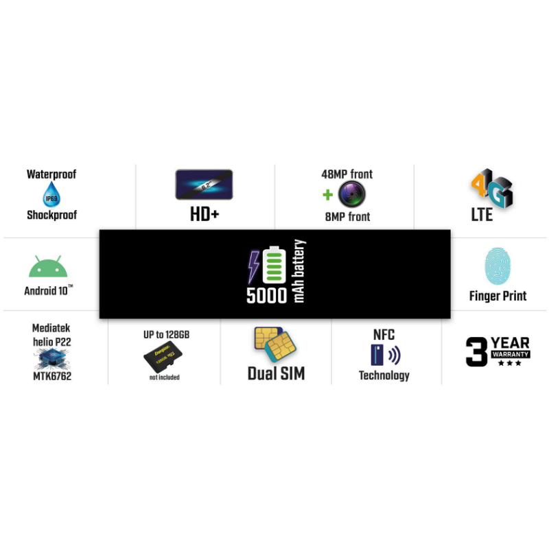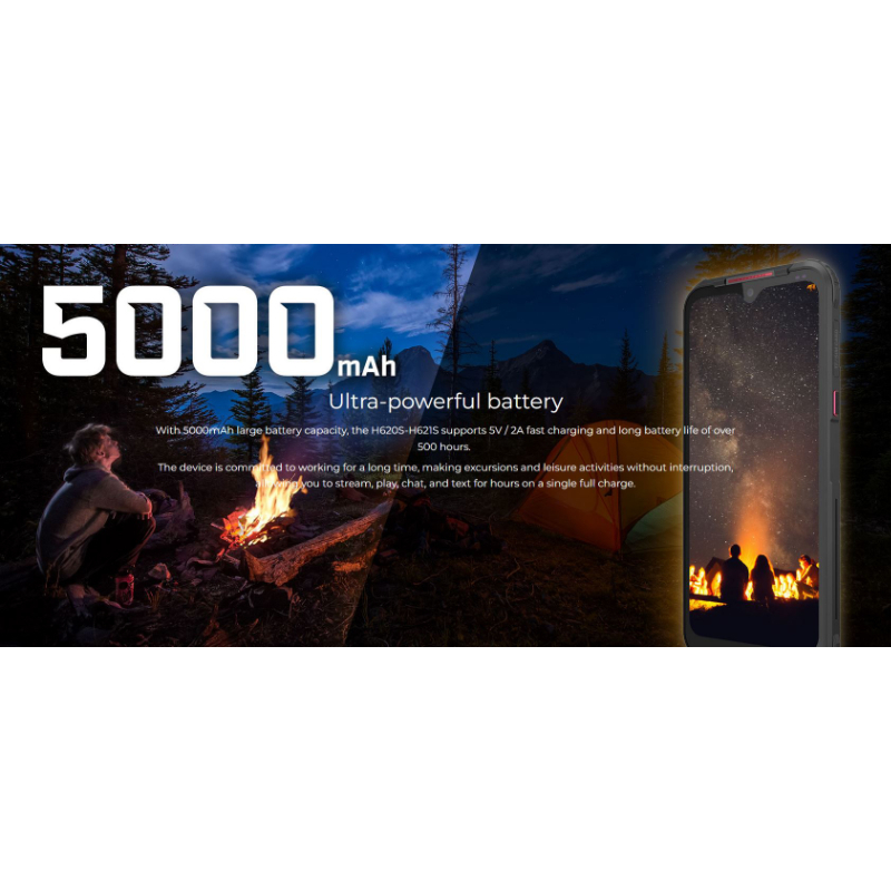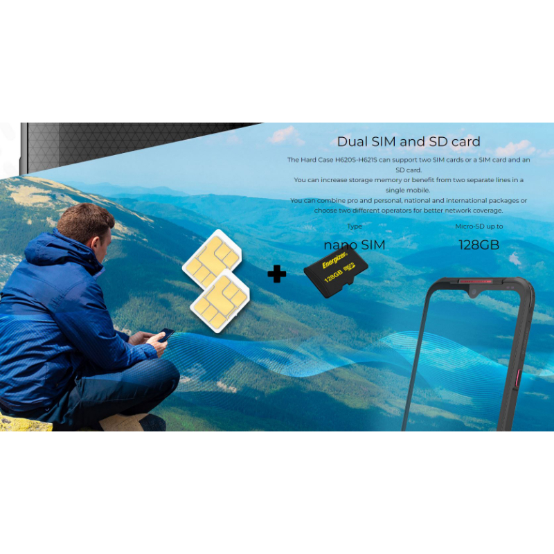 Display Experience total immersion in content. The Energizer HardCase H620S smartphone will captivate you from the first glance with its HD+ resolution to immerse you in a visual experience full of colour and detail. Processor and memory The H620S demonstrates versatility and adapts as best it can to provide the best experience while maintaining device autonomy. It is powered by an 8-core MediaTek MTK6762V/WB processor, which is powerful to meet all processing requirements. Combined with 4GB of RAM and 64GB of internal memory, it delivers incredibly smooth performance in heavy gaming, video or multitasking applications. Capacious battery Enjoy everything your smartphone has to offer without worrying about battery levels. The HardCase H620S has a 5,000 mAh battery, so it lasts a very long time on a single charge, making it the perfect companion. Waterproof The H620S meets the rigorous IP69 certification, which provides almost the best protection against water. A device with this certification is hermetically sealed and can withstand immersion to a depth of 1.2 metres for 30 minutes. Durability Thanks to its ultra-resilient coating, the H620S can withstand many shocks and is resistant to drops from up to 1.2 metres. It is an ideal device designed to work in very dusty or sandy environments and similar industrial conditions without compromising performance. Camera With a 48 MP main camera, the H620S smartphone can capture the landscape you see and love. Discover a mysterious world and your own masterpiece. The 8 MP front camera accurately tracks your features and highlights lighting, skin tone and facial texture details to make every selfie look beautiful and natural. Dual SIM The H620S smartphone can support two SIM cards and one Micro-SD card. Increase your phone's storage and use 2 different SIM cards in one phone. You can combine 2 plans or choose two different operators for better network coverage. Fingerprint reader The phone has a built-in fingerprint reader. With just a light press of your finger, you can instantly unlock your phone. Product features: - Large 6.2-inch TFT HD+ display - 48 MP main camera and 8 MP front camera - Processor: 8-core - Frequency: 1.8 GHz - ROM: 64 GB - RAM: 4 GB - Dual SIM card support - Bluetooth 5.0 support - 5000 mAh battery - 4G LTE support - Expandable memory via Micro-SD card up to 128 GB - Android 10 operating system - Included: 1x Energizer HardCase H620S smartphone, 1x Charger, 1x Headphones, 1x Cable, 1x User manual
