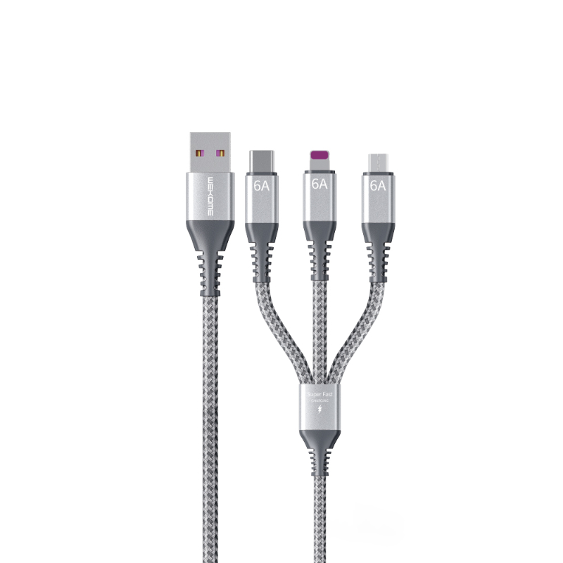 | Name des Erzeugnisses. | WEKOME WDC-170 Raython Serie - 3-in-1 USB-A auf USB-C + Lightning + Micro USB 1,2m Schnellladeanschlusskabel (Silber) |