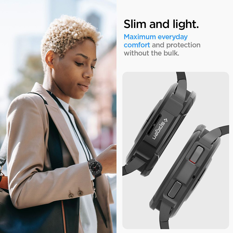 Spigen Liquid Air to etui wykonane z trwałego i odpornego na wstrząsy elastycznego TPU, które zwiększa przyczepność i komfort użytkowania. Nie pogrubia znacząco zegarka, zachowując jego oryginalny kształt, jednocześnie zapewniając mu ochronę przed zarysowaniami. Jest super lekkie i łatwe w montażu