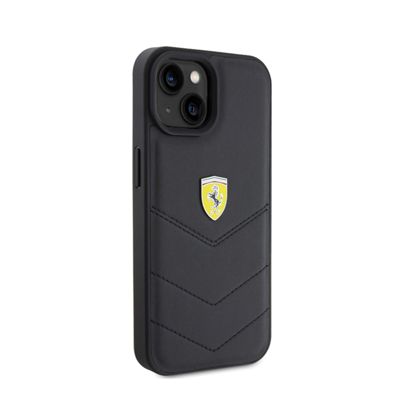Ferrari Quilted Metal Logo - Case for iPhone 15 Car (Black)
