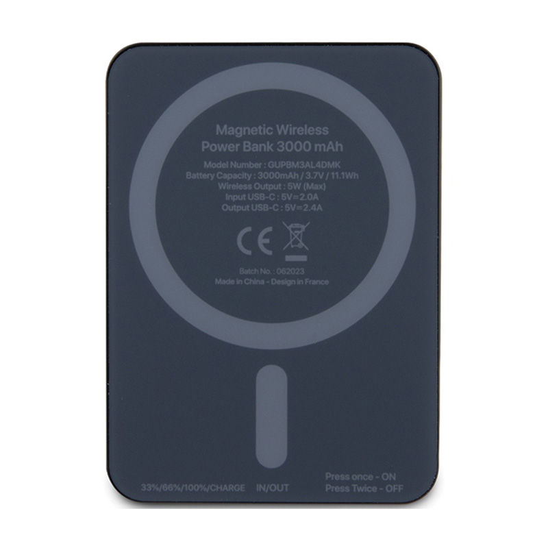 | Име на предмета | Guess 4G Strassed Metal Logo MagSafe - Power Bank inductive 3000 mAh 5W MagSafe (black) |
