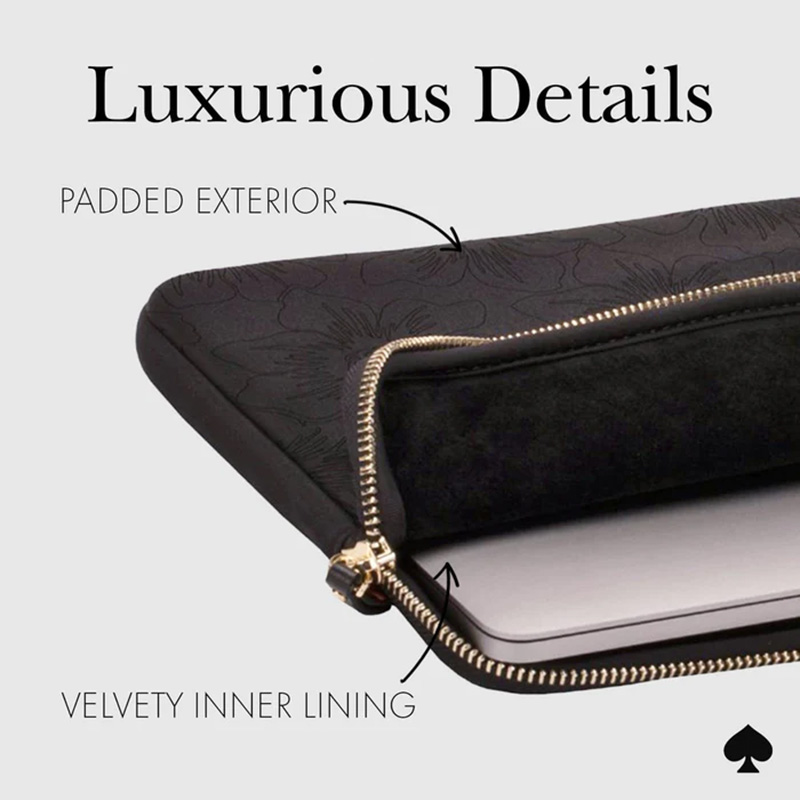 Objevte dokonalou kombinaci stylu a ochrany s tenkým pouzdrem na notebook Kate Spade New York, vyrobeným speciálně pro zařízení do 13 palců. Toto elegantní pouzdro nejen stylově vypadá, ale také poskytuje potřebnou ochranu vašemu zařízení. Vnější strana tohoto pouzdra funguje jako bariéra, která chrání vaše zařízení před nárazy a otřesy, umožňuje vám s ním cestovat a pohybovat se v každodenních situacích s klidem. Sametová vnitřní výstelka poskytuje jemnou, ale účinnou ochranu proti poškrábání a udržuje váš notebook čistý. Luxusní zlaté detaily dodávají eleganci a charakter, takže váš notebook vypadá nejen bezpečně, ale také stylově. Vlastnosti produktu: · Luxusní zlaté detaily · Odolný vnější povlak · Sametová vnitřní podšívka · Chrání váš notebook ze všech stran · Kompatibilita: MacBook Pro 13" / MacBook Air 13" / Notebook 13"