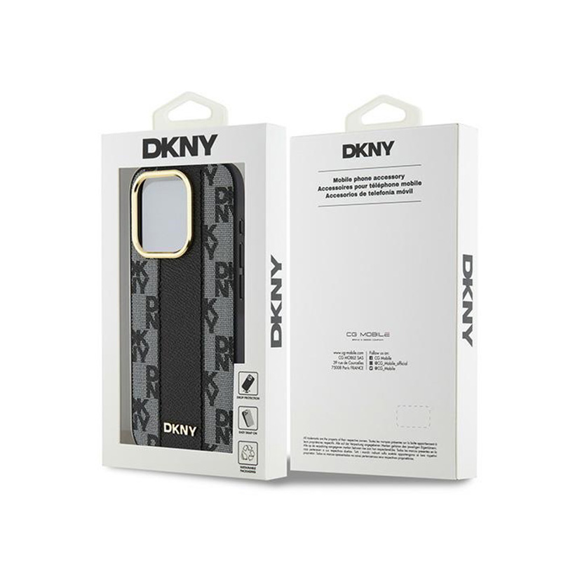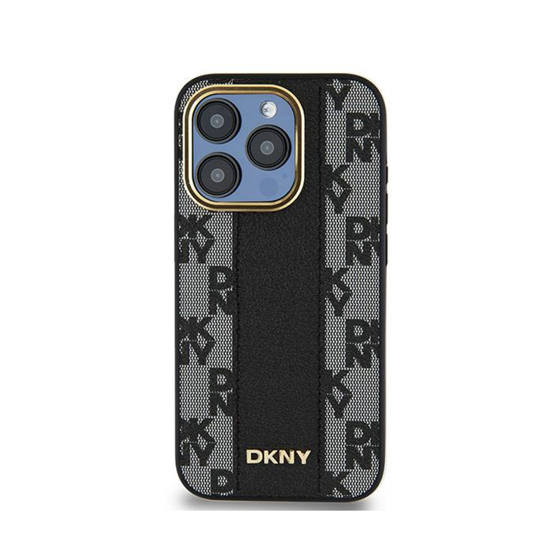 DKNY Leather Checkered Mono Pattern MagSafe - Pouzdro pro iPhone 15 Pro Max (Černá)