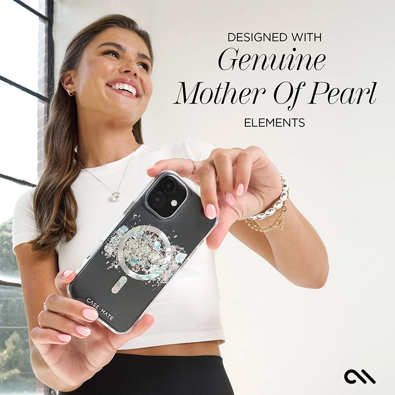 Pretty in pearls— the Touch of Pearl MagSafe Phone Case for the iPhone 16 features genuine Mother of Pearl elements with an irresistible pearlescent design. We know how much you love your phone, so feel confident knowing it’s safe with 12-foot drop protection while strong built-in magnets allow for easy MagSafe accessorizing and charging.
