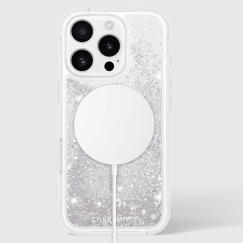 Etui Case-Mate Waterfall MagSafe to prawdziwe dzieło sztuki, które zachwyca swoim unikalnym, lśniącym designem. Wnętrze etui wypełnione jest mieniącym się brokatem, który tworzy efekt płynnego wodospadu, który ożywa przy każdym ruchu telefonu.