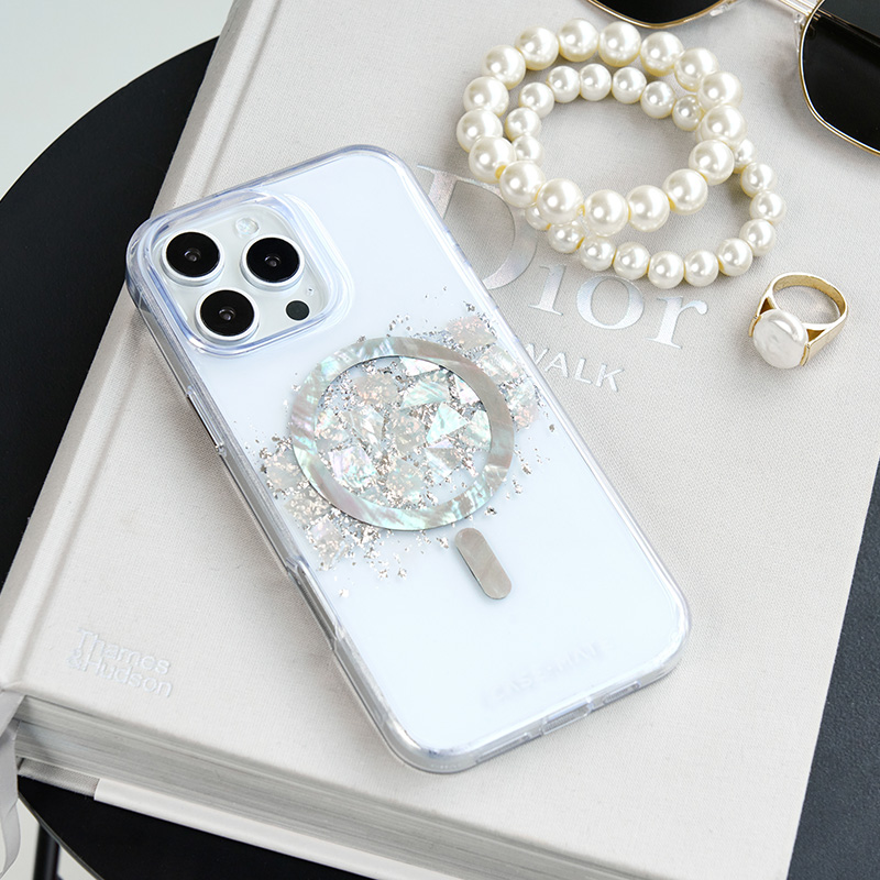 Pretty in pearls— the Touch of Pearl MagSafe Phone Case for the iPhone 16 Pro Max features genuine Mother of Pearl elements with an irresistible pearlescent design. We know how much you love your phone, so feel confident knowing it’s safe with 12-foot drop protection while strong built-in magnets allow for easy MagSafe accessorizing and charging.