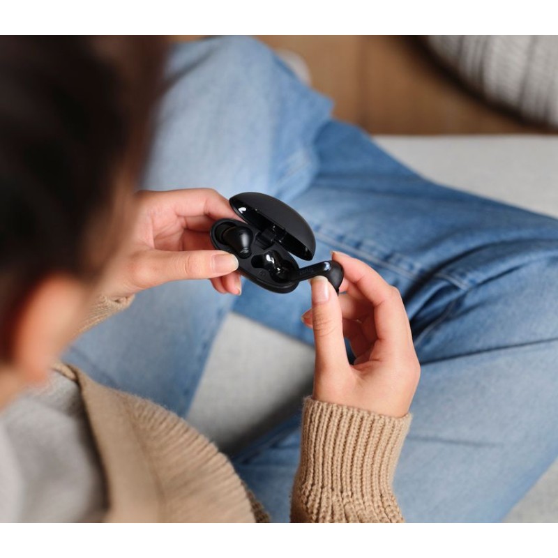 Discover a new dimension of sound with Trust Yavi wireless headphones. These advanced in-ear headphones not only deliver immersive sound quality, but also give you absolute freedom with Bluetooth TWS technology. Whether you're jogging, taking the train, or relaxing at home, get rid of annoying background noise with innovative dual-microphone technology with ENC (Environmental Noise Cancellation). Now your friends, family, and colleagues will hear you more clearly, not what's going on around you. Yavi headphones come with intuitive touch controls that allow you to easily play, pause, skip tracks, and answer calls with a single touch. Thanks to this, you don't have to take your phone out of your pocket or bag, which makes using them extremely convenient. Don't worry about running out of battery unexpectedly! Trust Yavi offers up to 6 hours of uninterrupted playback on a single charge. And when the battery runs out, just place them in the compact charging case, which extends the playtime for up to 23 hours, keeping you going with your music, movies, and calls. The set includes a practical charging case, a USB-C cable and different sizes of ear tips (S/M/L) for a perfect fit and maximum wearing comfort. In addition, the headphones are equipped with LED indicators that keep you informed about the charging and connection status. Product Features: · ENC (Environmental Noise Cancellation) technology · Bluetooth wireless connectivity · Communication range: up to 10 meters · Multi-function touch button for answering/ending calls, pausing/playing music, switching to the next song · Built-in microphone · LED Indicators · Sensitivity: 100 db · Speaker diameter: 13 mm · Frequency Response: 20Hz~20KHz · Music playback time: up to 6 · Total playback time: up to 23 · Compatible with smartphones, tablets and laptops · Made from 35% recycled plastic · Weight: 37 g · Dimensions: 48 x 64 x 26 mm · Package Contents: Earphones, Charging Case, USB-C Cable, Set of 3 Earbuds, S/M/L, Manual