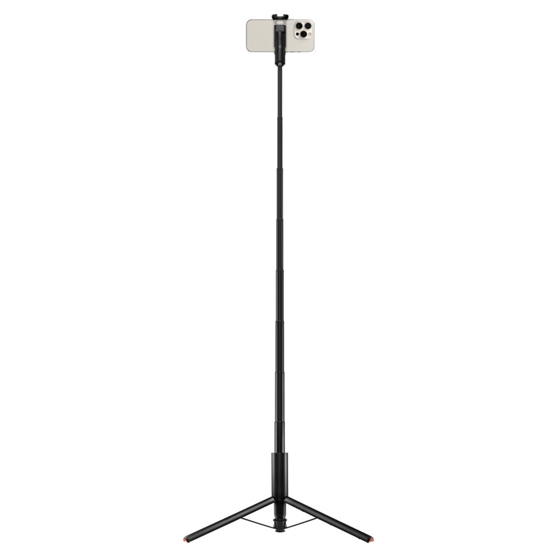 Protiskluzový úchop se silikonovým povrchem zajišťuje bezpečné držení smartphonu a chrání jej před poškrábáním. Odnímatelný dálkový ovladač Bluetooth (s baterií) umožňuje pořizovat fotografie na dálku, aniž byste se museli dotýkat telefonu. Inovativní nohy stativu se automaticky rozloží, když je tyč lehce položena na zem, což vám umožní okamžitě přepnout z režimu selfie do režimu stativu.