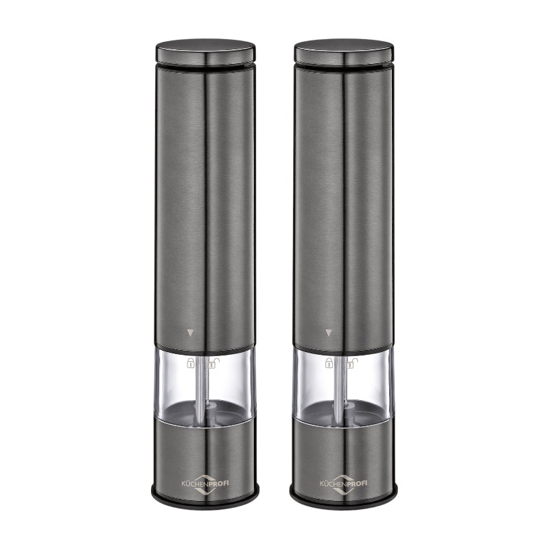 | Nazwa prod. | Küchenprofi Boston - Elektryczne młynki do soli i pieprzu z ceramicznym mechanizmem mielącym 23x5 cm 2 szt. (szary) |