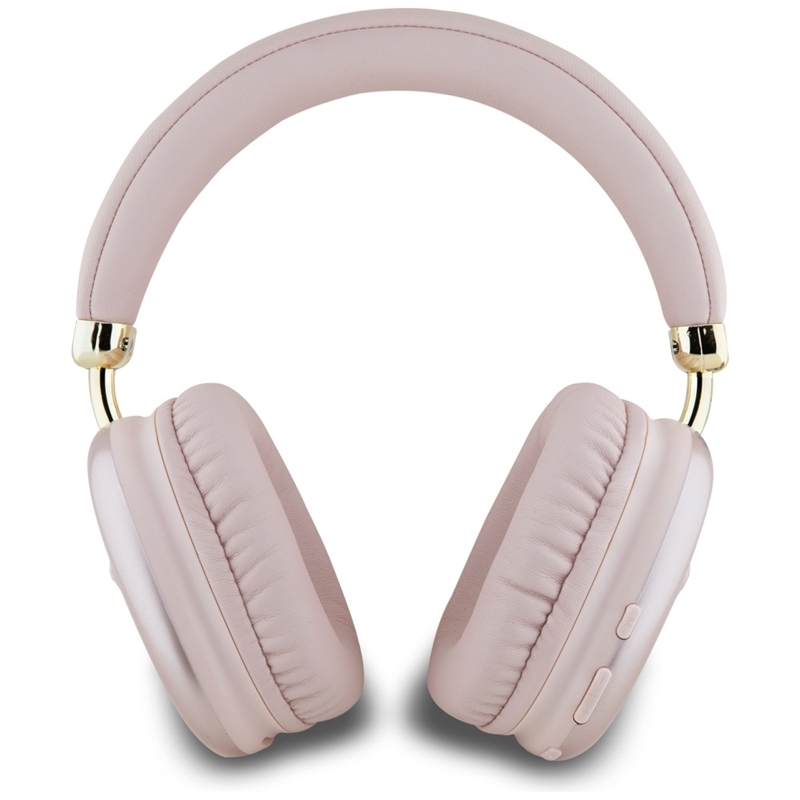 The pink color gives them a stylish, minimalist look that is perfect for any occasion. The headphones are decorated with a triangular Guess logo, which emphasizes their luxurious character.