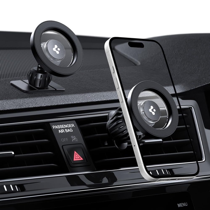 El soporte para coche Spigen MFT13 es una solución moderna y funcional para todos los conductores que valoran la comodidad y la seguridad durante la conducción. Totalmente compatible con la tecnología MagSafe, el soporte proporciona un montaje instantáneo y estable de su teléfono inteligente mediante una fuerte conexión magnética.