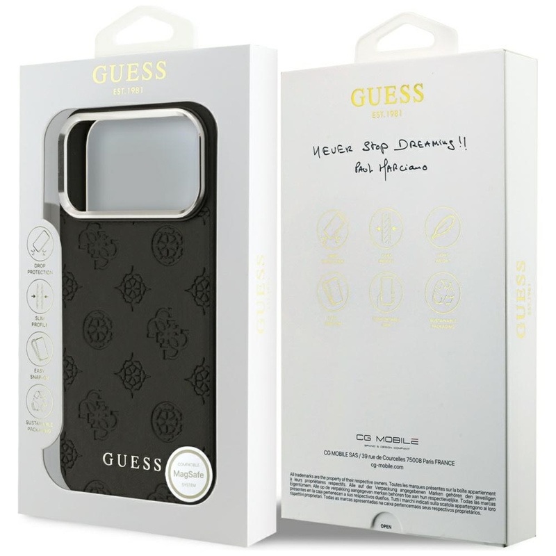 Guess Peony Hot Stamp Script MagSafe - Etui iPhone 17 Pro Max (czarny)