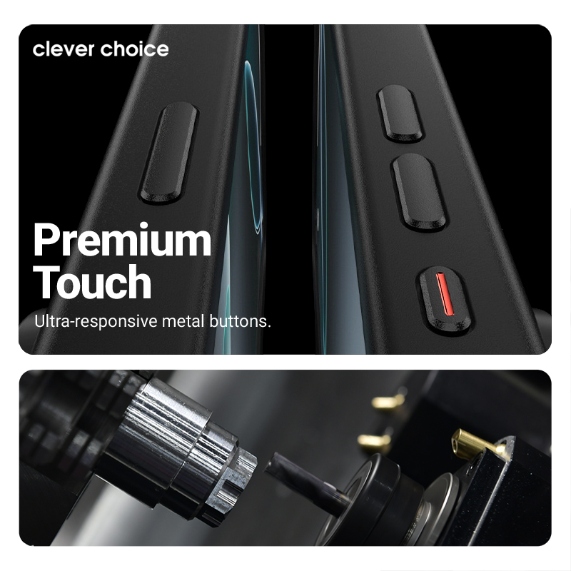 Etui Hybrid Frost MAG Cover zostało również wyposażone w precyzyjne przyciski z aluminium, które zapewniają wygodne korzystanie ze wszystkich funkcji telefonu. Podwyższony rant wyświetlacza umożliwia przy tym bezpieczne odkładanie iPhone’a ekranem do dołu, a podniesiona ramka wokół kamery zabezpiecza tylny aparat.