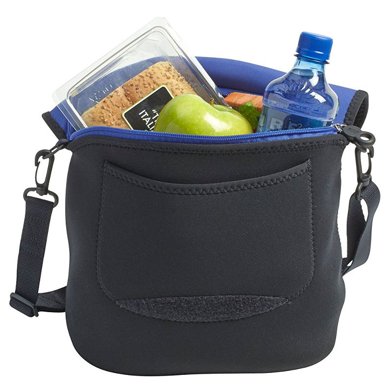 This Messenger Lunch Bag will help keep food hot or cold and is great for carrying your lunch on the go, especially on a bicycle. It features an adjustable bicycle attachment, making it easy to cycle while carrying your lunch. Also features a front pocket to hold cellphone or keys, a front flap that folds over the pocket, and secure internal zip closure to keep food insulated. There are two options for carrying: quick grab handle or long cross-body strap featuring pull ring for quick length adjustment. Made from stretchy neoprene (the wet suit material).